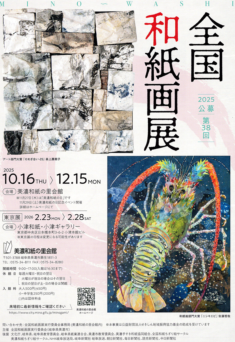 「2025公募 第38回全国和紙画展」において、アート部門 銀賞をいただきました。